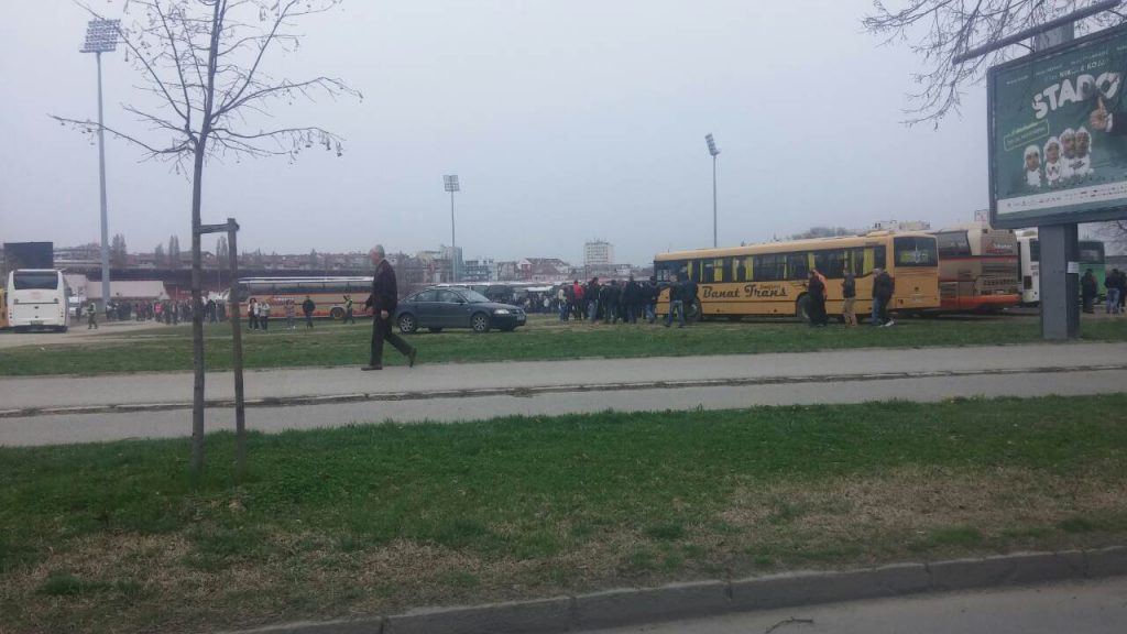 Na desetine autobusa dovezlo je danas građane iz svih krajeva Vojvodine i Srbije na predizborni miting Srpske napredne stranke, koji se danas održava u Novom Sadu.