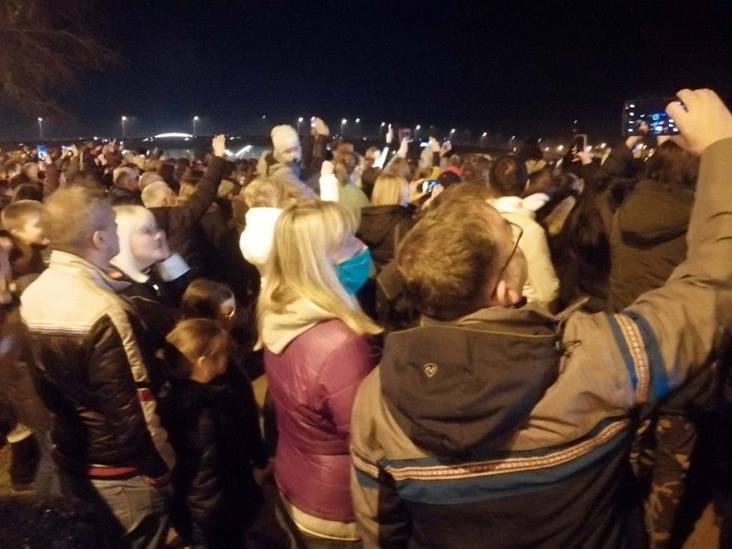 Dok je sa razglasa puštan veliki hit „Živeti slobodno“ Novosađani su pevali sa podignutim pesnicama.