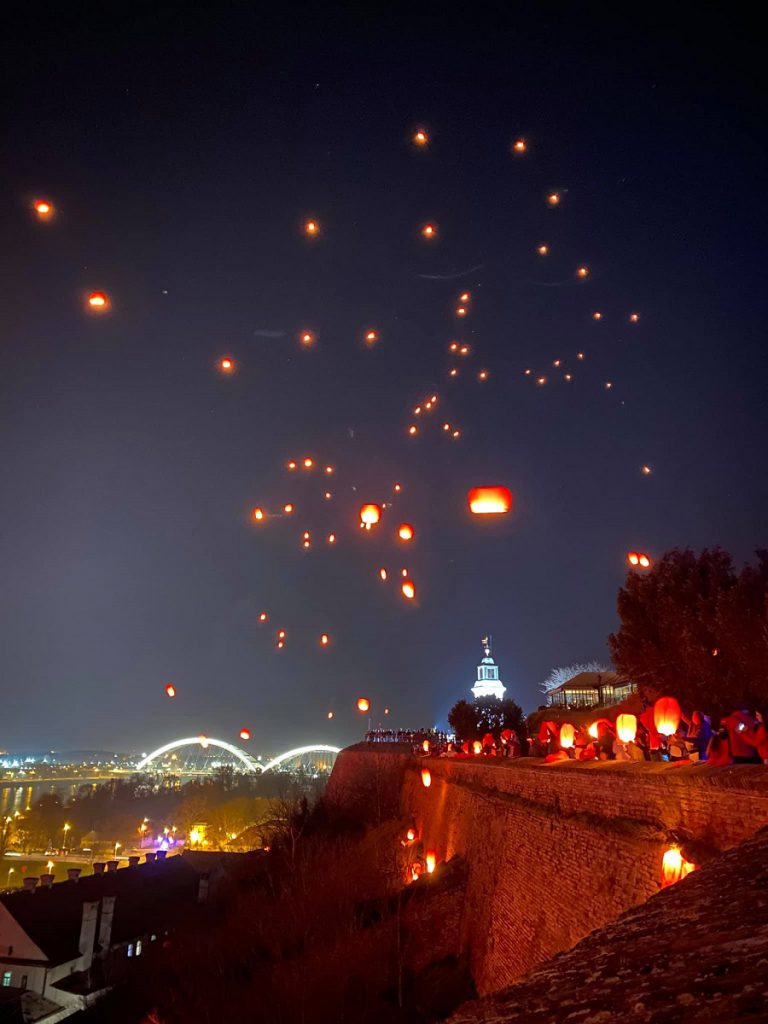 Uz zvuke pesme „Noć kad sam preplivao Dunav“ sa čamaca na Dunavu i sa Petrovaradinske tvrđave u nebo su večeras pušteni lampioni.
