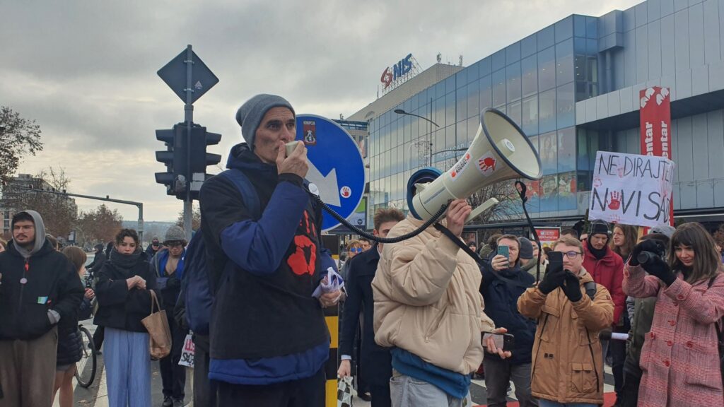 „Kaže vlast da ne sme nastava da se zaustavi. A kako sme da pogine 15 ljudi u Novom Sadu zbog korupcije?“, upitao je Milićević na studentskom protestu u Novom Sadu.