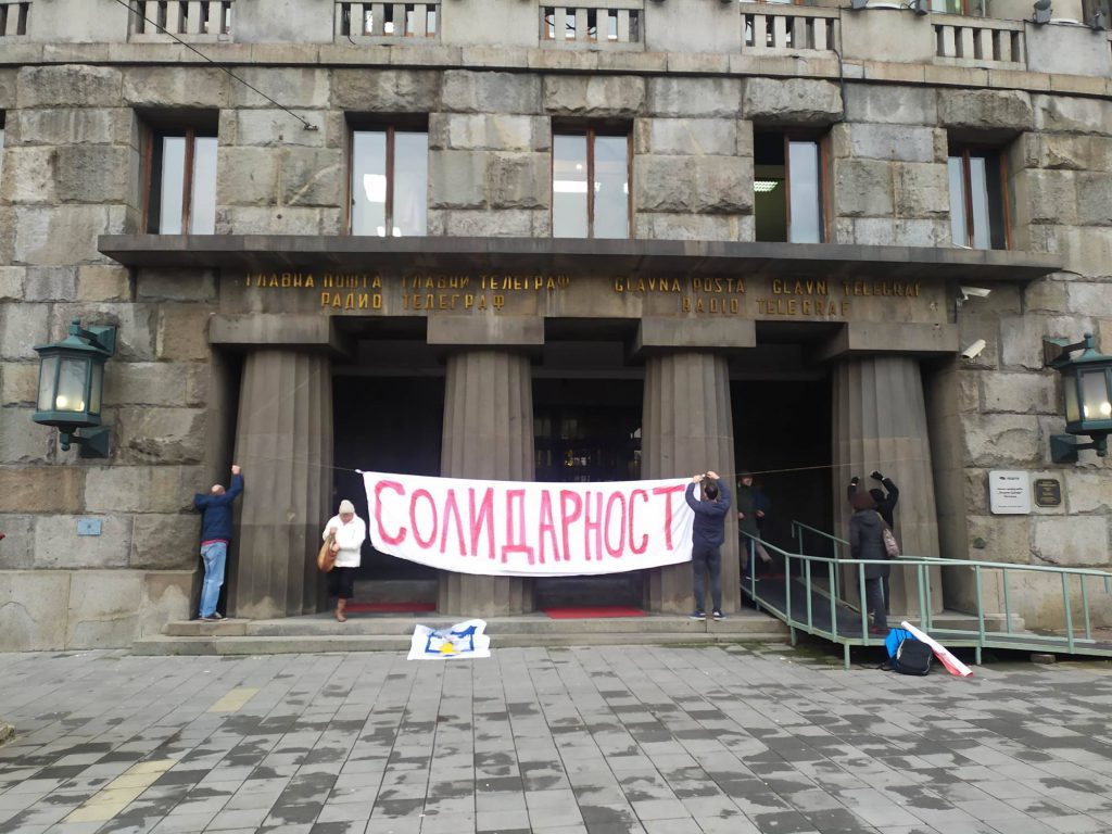 Inicijativa Ne davimo Beograd postavila je danas baner sa natpisom „Solidarnost“ na ulazu u glavnu poštu u Takovskoj ulici u Beogradu, kako bi uputila poruku podrške radnicima Pošte koji već devet dana štrajkuju tražeći bolje uslove rada.