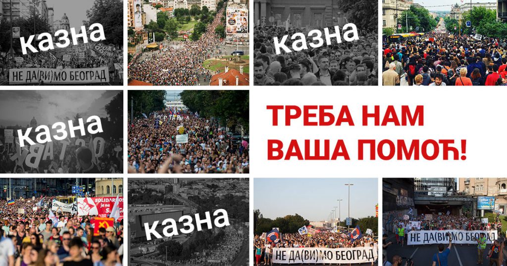 U saopštenju se navodi da je najveća kazna od 100.000 dinara izrečena za protest „Ostavke i odgovornost“ 15. februara 2017. godine, koji je organizovan kao reakcija na saznanja koja je supruga gradonačelnika Siniše Malog iznela u intervjuu Mreži za istraživanje kriminala i korupcije KRIK.