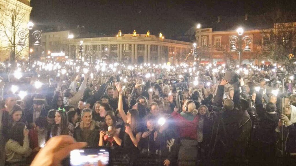 Georgiev se pojavio među građanima i otpevao nekoliko pesama, a rekao je da mu je žao što nije mogao da peva za njih u gradskoj hali mnogo duže.