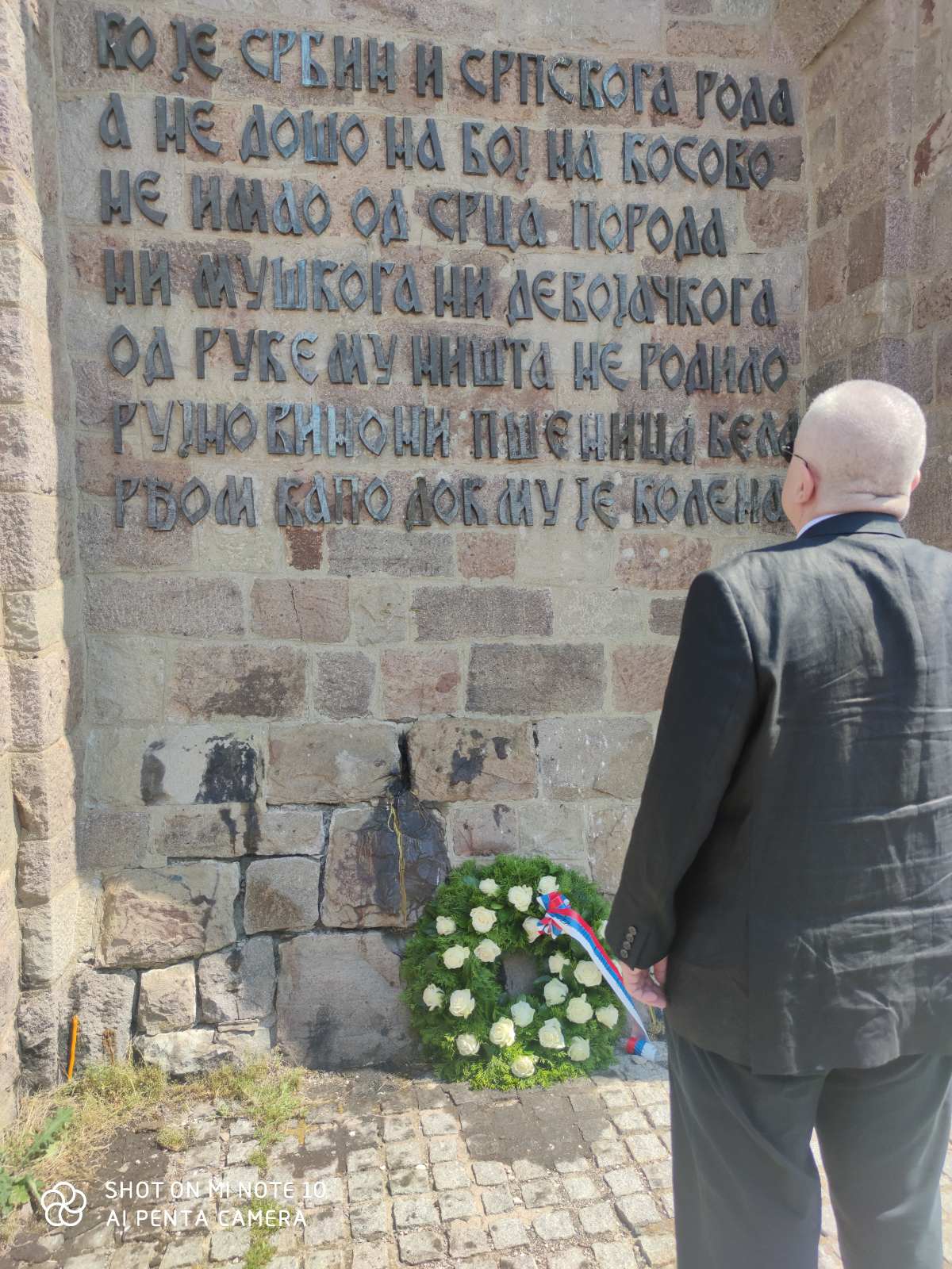 Predsednik LSV je zatim otišao na Gazimestan gde je povodom Vidovdana položio venac na kojem je ispisana poruka “Večna slava srpskim junacima”.