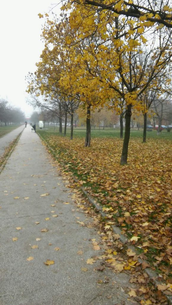 Pozni je novembar, radni je dan. Vreme je prohladno, blizu nule. Na jednom od periferijskih bulevara – na Novom naselju – na kojem je uvek dosta šetača, malo je prolaznika. Sumaglica je, smog li je? Znaju oni koji razlikuju jesenje magle od gradskog smoga. Tek, sfumato je.