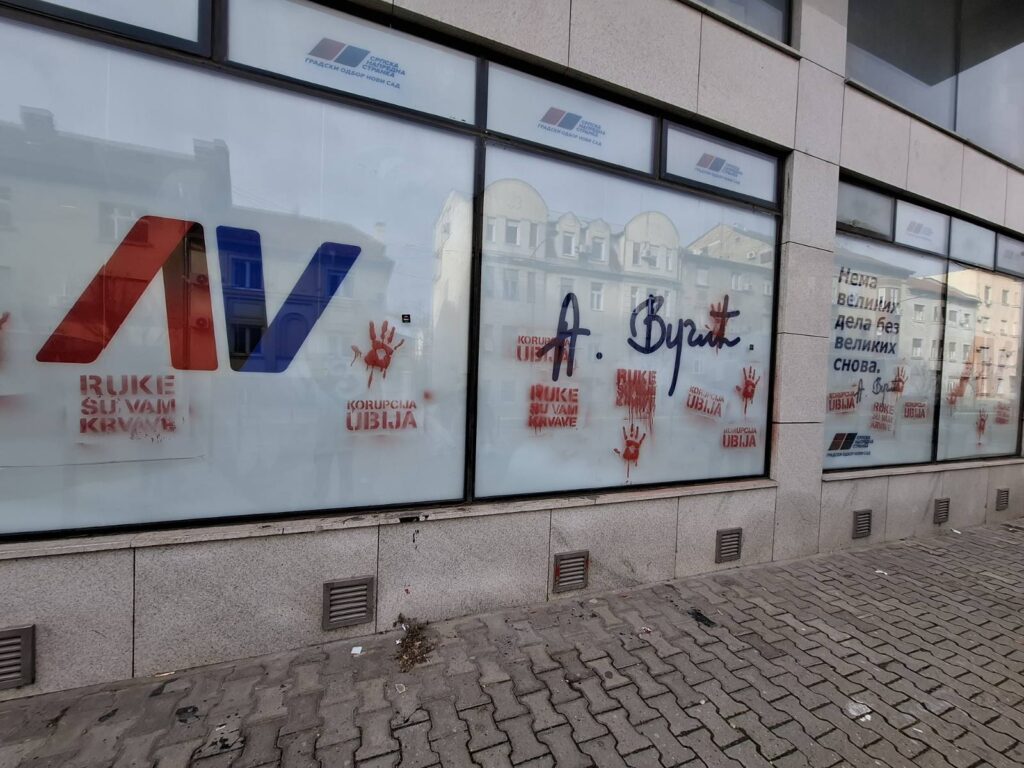 Aktivisti opozicionog Građanskog pokreta Bravo iz Novog Sada danas su ispisivali grafite “Ruke su vam krvave” i “Korupcija ubija” po prostorijama Srpske napredne stranke u tom gradu.