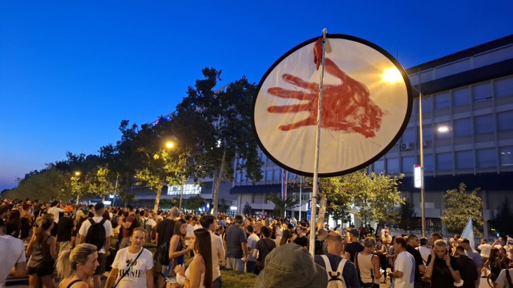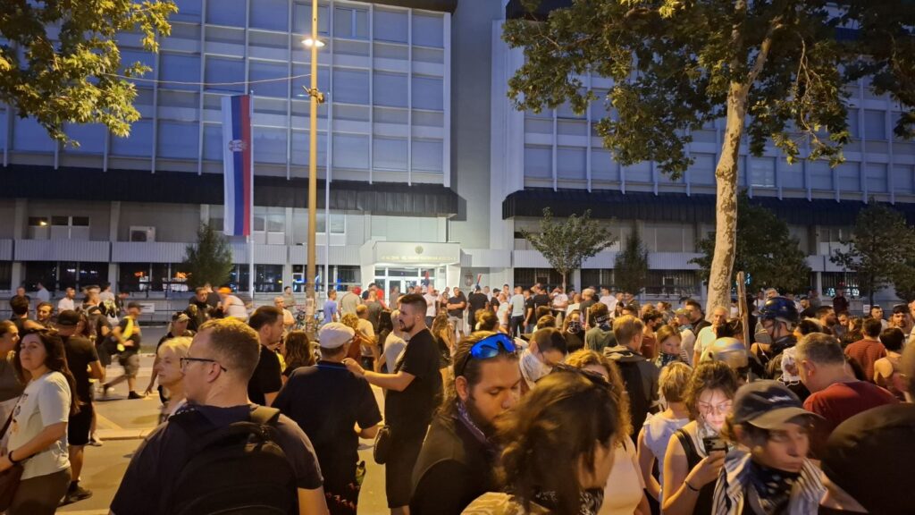 Prethodno su se građani i studenti okupili ispred zgrade Bezbednosno-informativne agencije na Bulevaru oslobođenja. Oni su pravili buku duvanjem u pištaljke, a sa megafona je konstantno puštana jedna poruka – „Miloše ološe“.