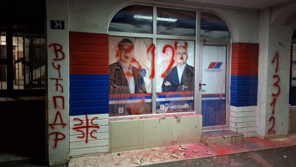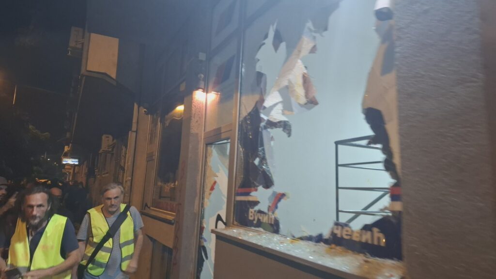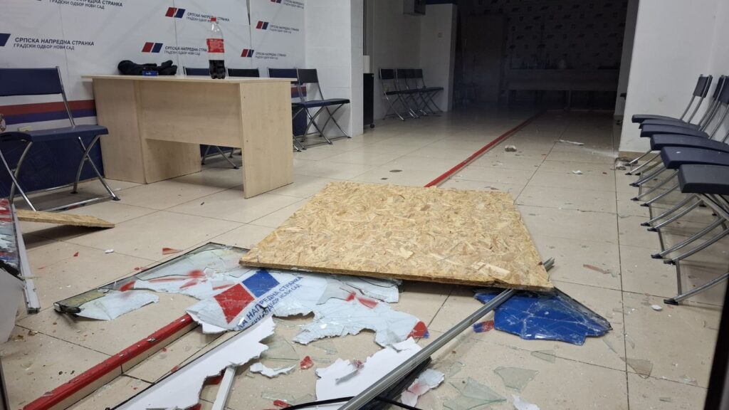Prostorije Srpske napredne stranke na Bulevaru oslobođenja, u Stražilovskoj i Kosovskoj ulici u Novom Sadu večeras su demolirane. Policija se pojavila u Kosovskoj ulici i potisnula demonstrante. Okupljeni su policiju gađali daskama i kamenjem, nakon čega je ispaljeno više suzavaca.