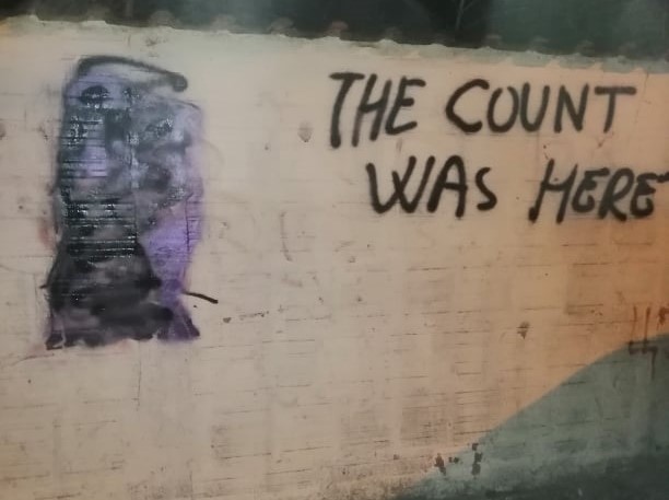 Manji murali sa likom Ratka Mladića takođe su išarani srnim sprejem.