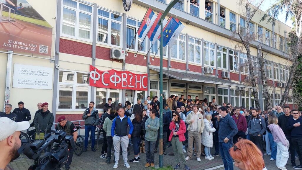 Dekan Fakulteta sporta i fizičkog vaspitanja Patrik Drid pojavio se danas ispred zgrade tog fakulteta, gde se još pre osam časova okupio veliki broj studenata. Studenti i građani koji su došli da im pomognu u odbrani blokiranog fakulteta sprečili su dekana da uđe u zgradu fakulteta. Pripadnici Žandarmerije i Interventne jedinice policije pokušali su silom da rasteraju studente i građane koji blokiraju ulazu u fakultet.