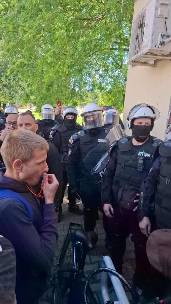 Na licu mesta se pojavila i policija u opremi za razbijanje demonstracija, a u blizini DIF-a parkirano je i nekoliko „marica“.