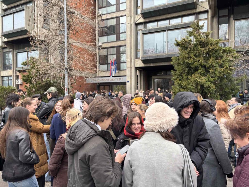 Nekoliko stotina studenata novosadskih fakulteta i viših škola okupilo se na protestu ispred Filozofskog fakulteta. Studenti u blokadi Univerziteta u Novom Sadu danas bojkotuje nastavu, a studenti Filozofskog su u bojkotu do daljeg, odnosno dok se ne ispune tri uslova koja su zatražili. Nakon okupljanja ispred svojih matičnih fakulteta, oni su organizovano prošetali do Filozofskog.