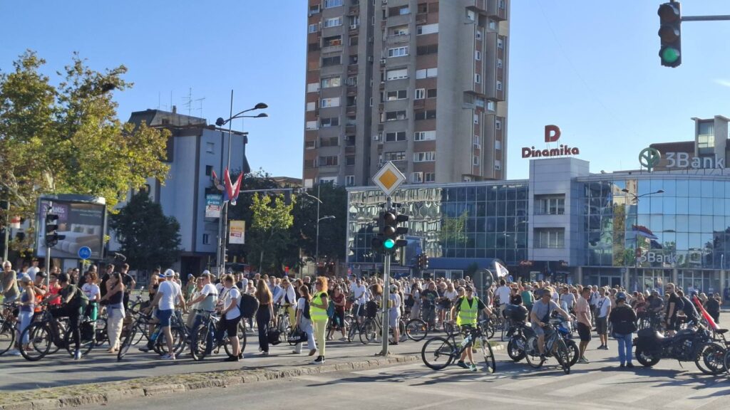 Veliki protesni skup „Za sve političke zatvorenike u Srbiji“, koji organizuju novosadski Zborovi građana, počeo je prethodno blokadom raskrsnice kod Železničke stanice