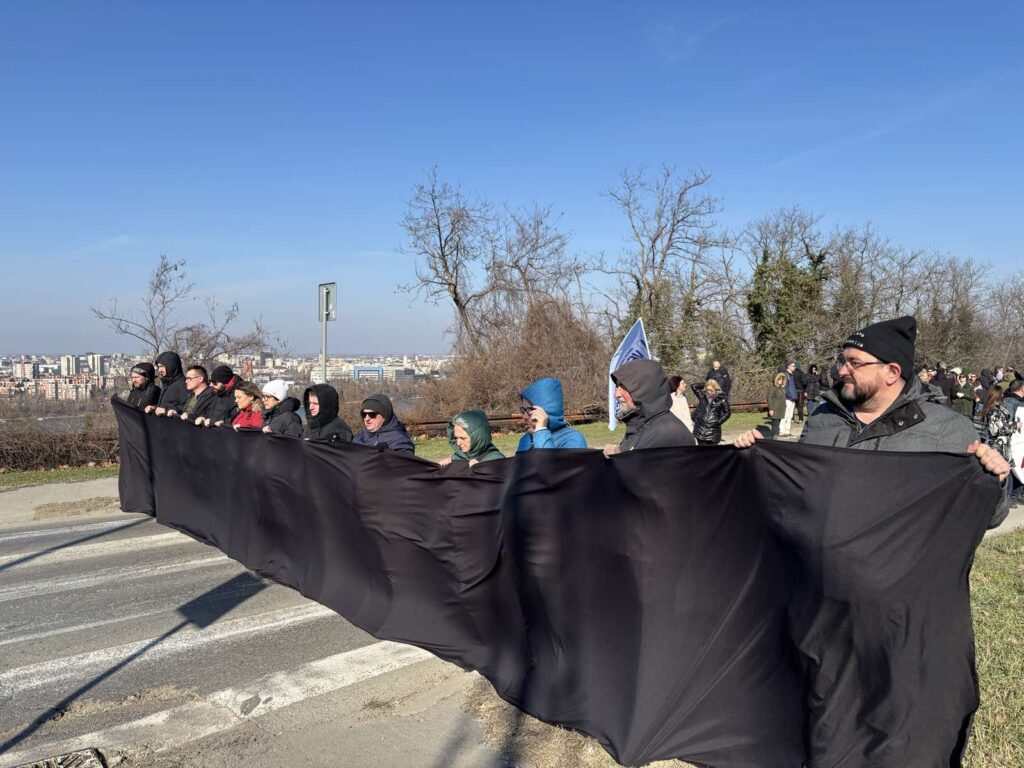 Učenici Elektrotehničke škole “Mihajlo Pupin”, koja je u potrpunoj blokadi, izašli su na Futošku ulicu noseći transparent “Studenti, vi nama danas držite čas”.