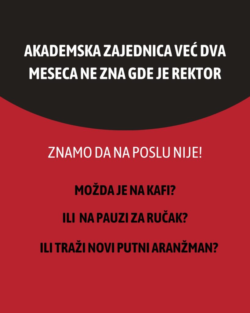 Profesori, istraživači i asistenti sa Univerziteta u Novom Sadu, organizovani u mrežu Slobodan univerzitet, najavili su da će sutra organizovati akciju “Potraga za rektorom”