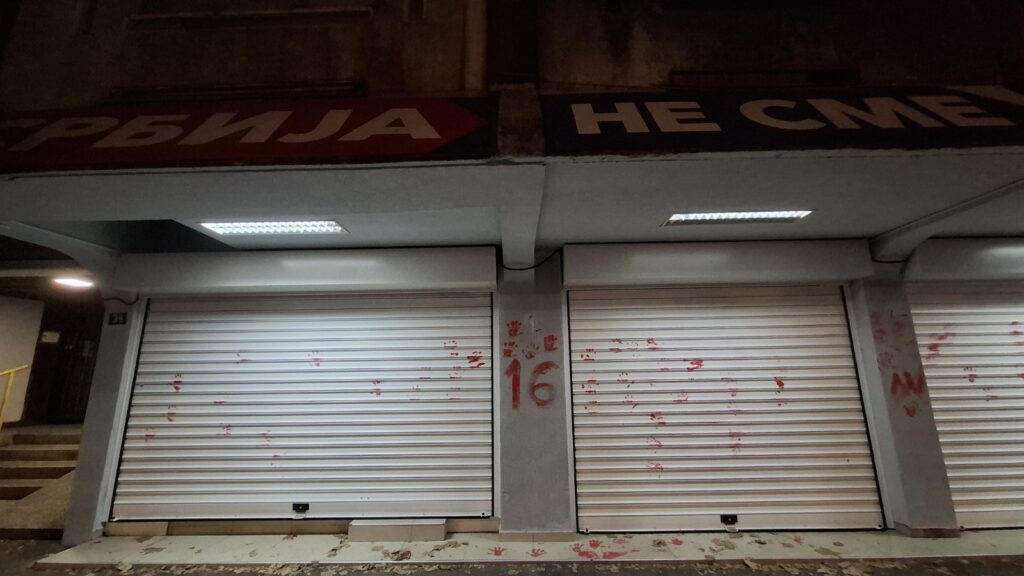 Oni se terete za drsko i nedolično ponašanje jer su sinoć na prostorijama SNS-a na Bulevaru oslobođenja ostavljali crvene otiske šaka i napisali broj 16