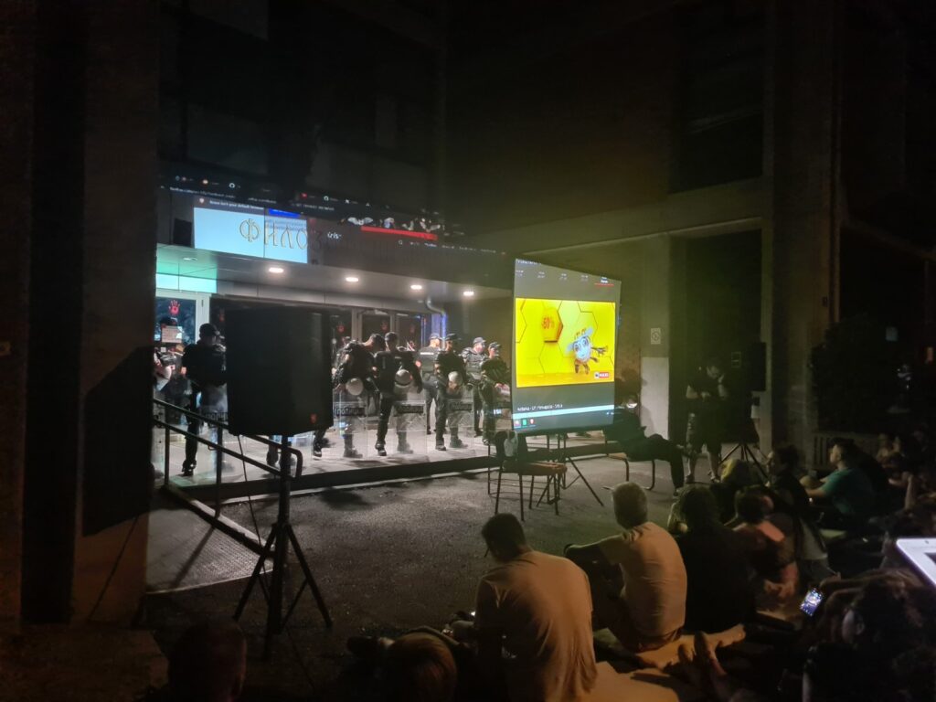 Studenti u blokadi Univerziteta u Novom Sadu večeras su ispred zgrade Filozofskog fakulteta organizovali gledanje direktnog prenosa košarkaške utakmice Srbija – Portugal na Evropskom prvenstvu, dok ulaz u zgradu i dalje blokira kordon policije.