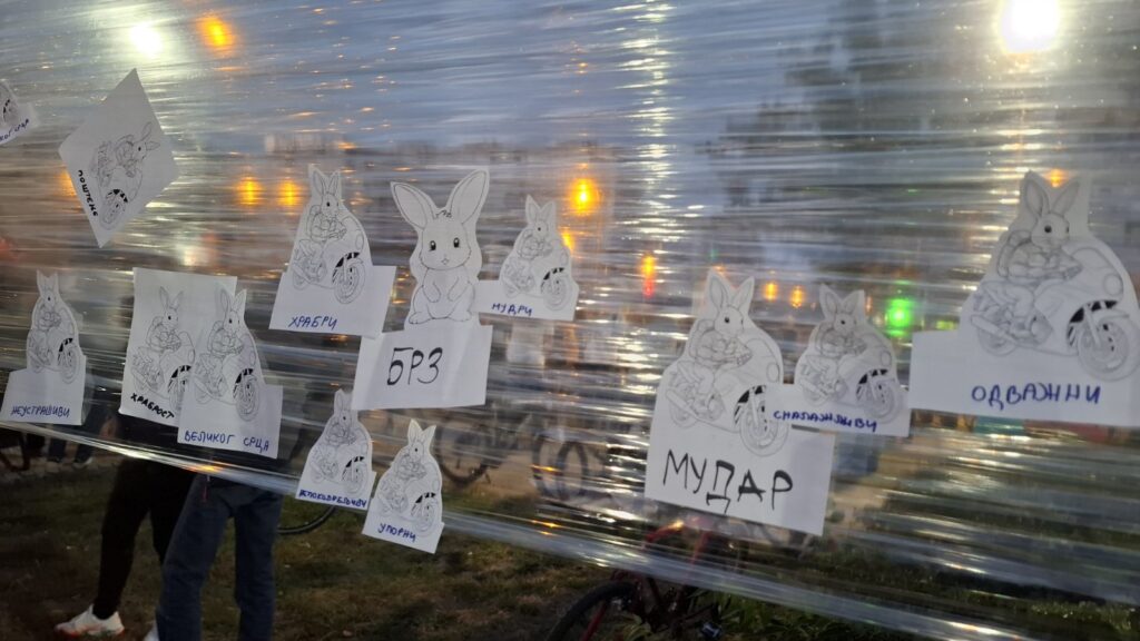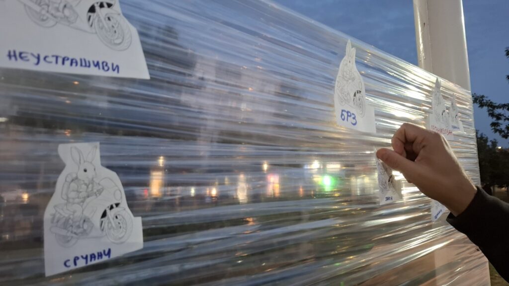 Na svim papirima su bili nacrtani zečevi, jer bajkeri na protestima nastupaju u neformalnoj organizaciji „Beli zečevi“. Ispod crteža, građani su ispisali poruke i potom lepili papiriće.