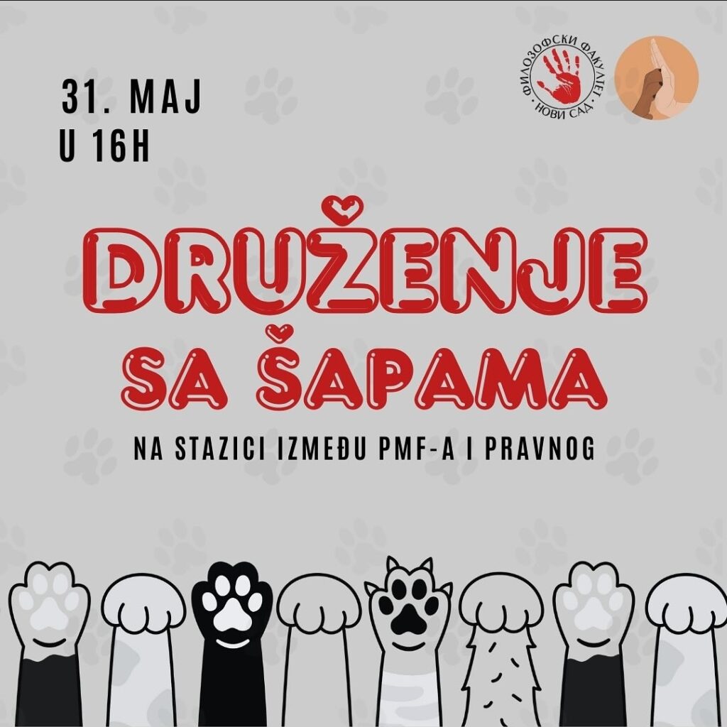 „Druženje sa šapama“, kako je nazvan događaj, počeće u 16 časova u kampusu Univerziteta u Novom Sadu, na stazici između PMF-a i Pravnog fakulteta, na mestu koje pruža dovoljno prostora za okupljanje, šetnju i uživanje na svežem vazduhu.