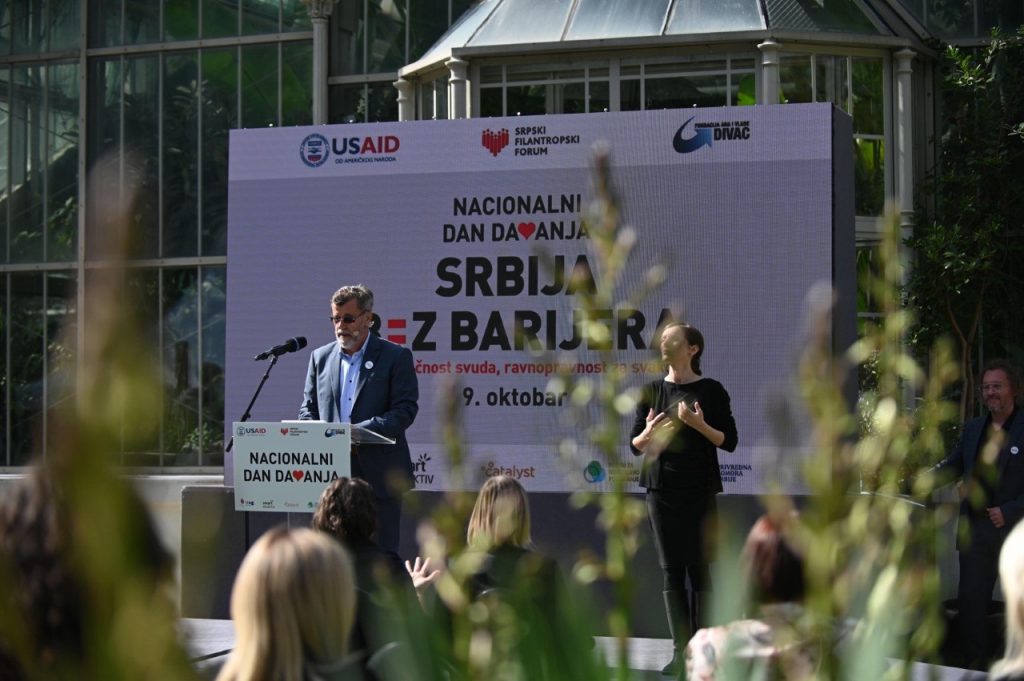 Koalicija za dobročinstvo i Srpski filantropski forum, uz pomoć Američke agencije za međunarodni razvoj (USAID obeležili su danas treći Nacionalni dan davanja, koji je ove godine bio praćen medijskom kampanjom “Srbija bez barijera”, sa ciljem da podigne svest o položaju osoba sa invaliditetom u društvu i značaju ravnopravnosti.