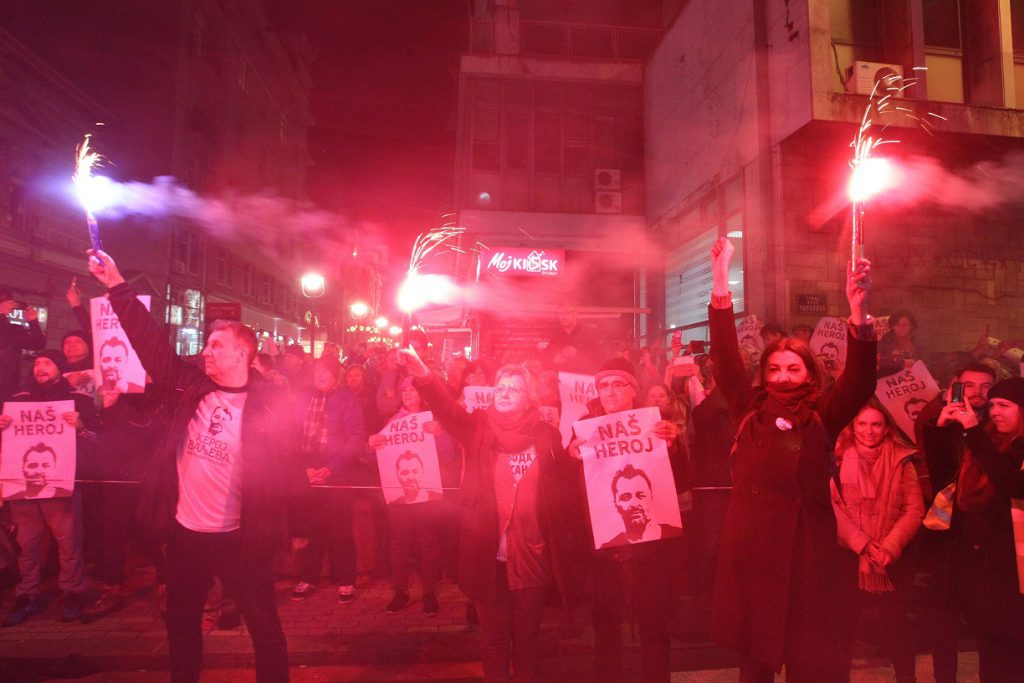 Jedna od organizatorki protesta Valentina Reković rekla je pre obraćanja Obradovića, da je on bio zatočen zbog istine i da je zahvaljujući pritiscima građana pušten na slobodu.