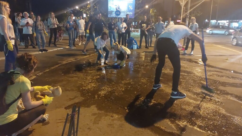 Više desetina građana odazvalo se večeras na poziv više opozicionih stranaka i Zborova Novog Sada i zatim očistilo mesto odavanja pomena žrtvama pada nadstrešnice preko puta Železničke stanice.