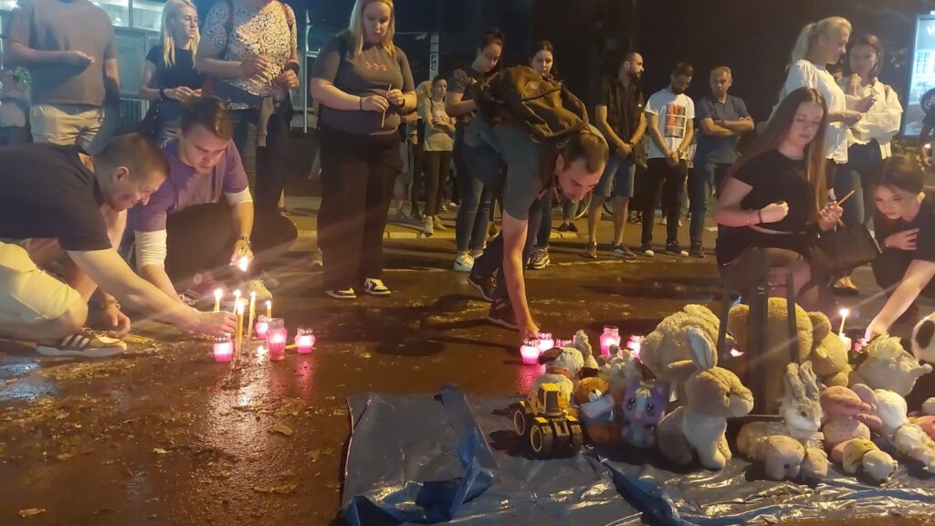Na društvenim mrežama popodne se pojavio snimak muške osobe koja urunira na sveće, plišane igračke i poruke koje građani mesecima ostavljaju na tom mestu, koji je snimio neki prolaznik iz kola.