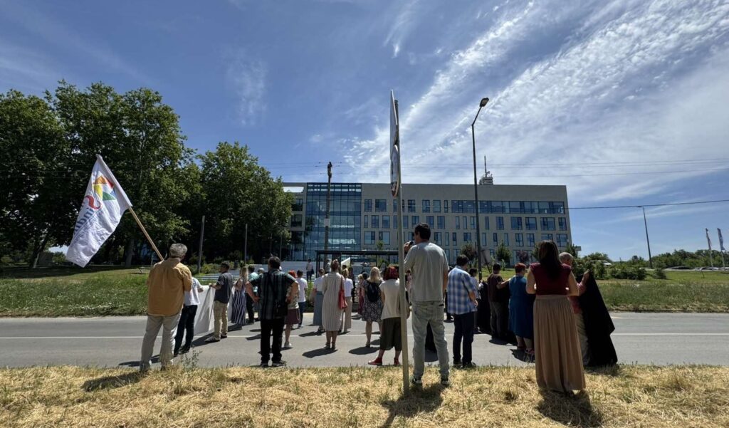 Deo zaposlenih uRadio-televiziji Vojvodine takođe je obeležio osam emseci od pada nadstrešnice. Više desetina je izašlo ispred zgrade na Mišeliku, deo je držao ogroman crni flor, a deo je blokirao put ispred zgrade.