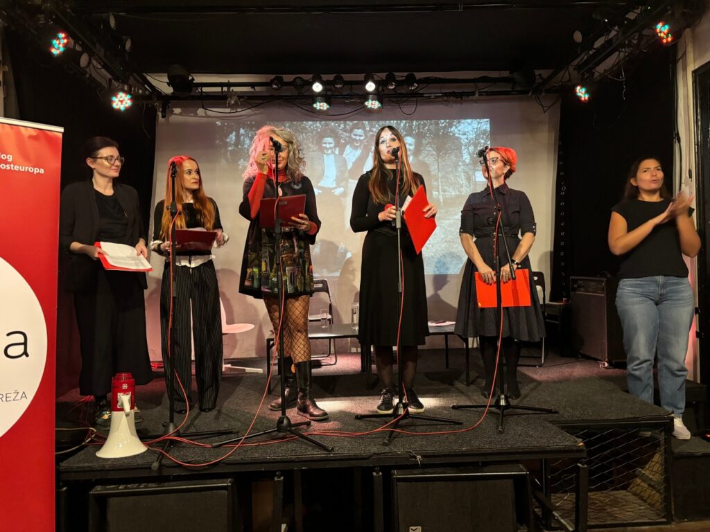 Sa tribine je upućen i poziv na osmomartovski marš antifašistkinja koji će se održati u Beogradu, povodom Međunarodnog dana žena.