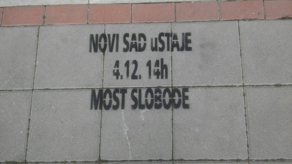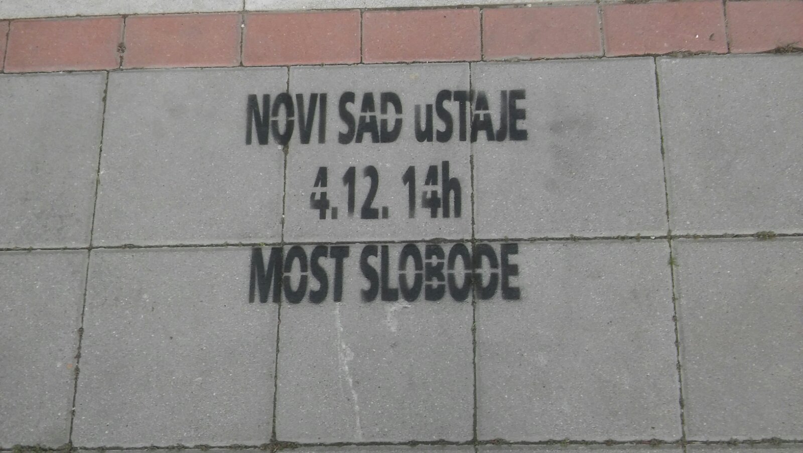 Grafiti po trotoarima i fasadama u Novom Sadu pozivaju na blokadu Mosta slobode
