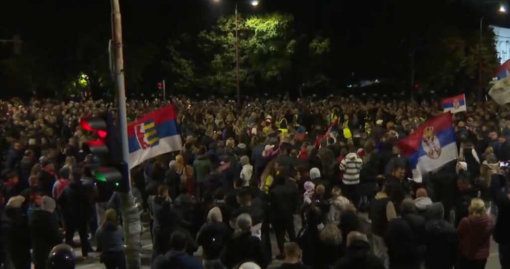Tokom večeri je došlo do verbalnog sukoba između aktivista SNS-a i građana, a nepoznati muškarci koji su nosili žute prsluke počeli su da dobacuju okupljenim građanima razne uvrede poput “ustaše”.