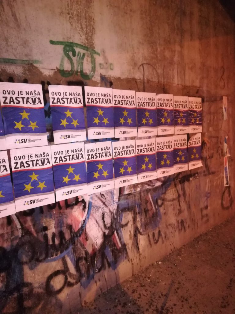 Aktivisti Lige socijaldemokrata Vojvodine (LSV) izlepili su noćas plakate “Ovo je naša zastava” po delovima Novog Sada.