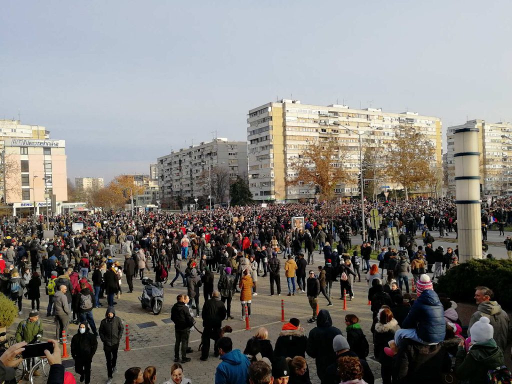 Više hiljada ljudi okupljenih na protestu u Novom Sadu blokirali su za saobraćaj nešto pre 14.00 sati rakrsnicu Bulevara Oslobođenja i Bulevara Narodnog fronta, čime je blokiran i Most slobode.