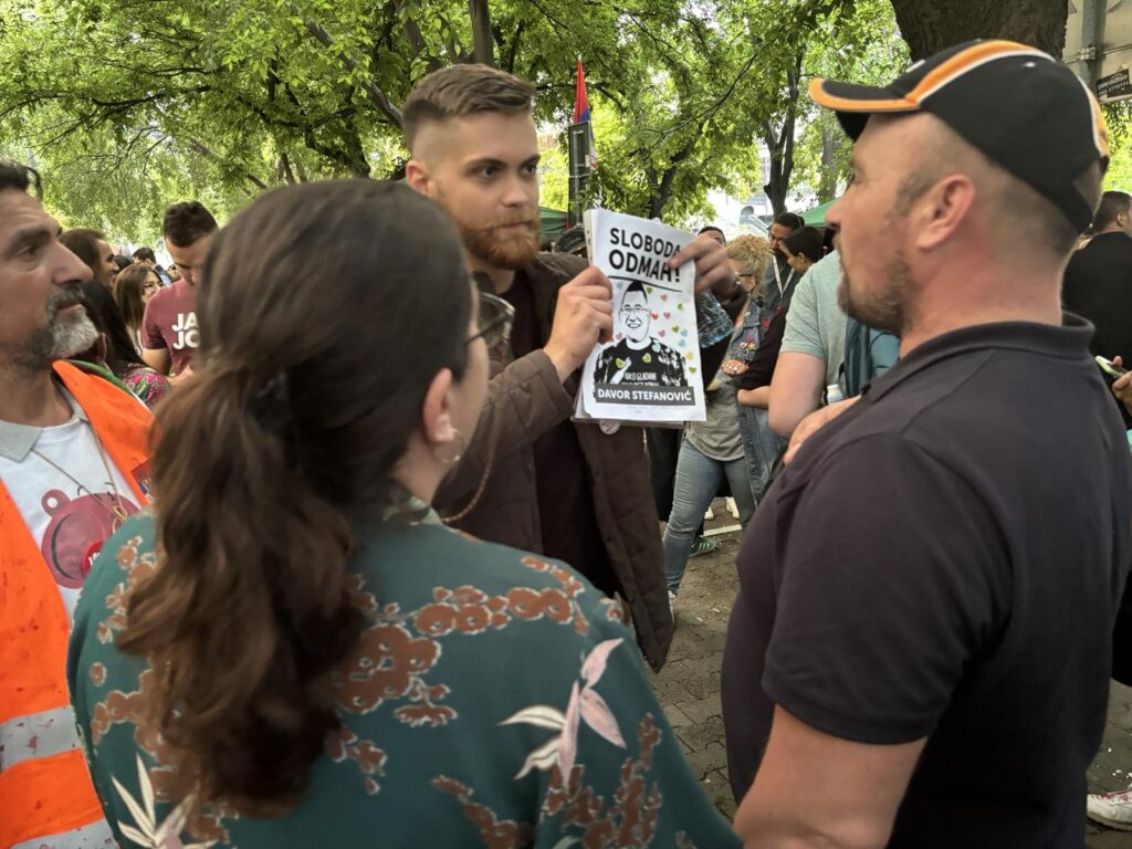 „Moramo dalje, nema predaje!“, poručila je Milana Stefanović, majka aktiviste Davora Stefanovića, dok su okupljeni ispred blokirane zgrade suda u Novom Sadu skandirali “Pustite ih sve!”.