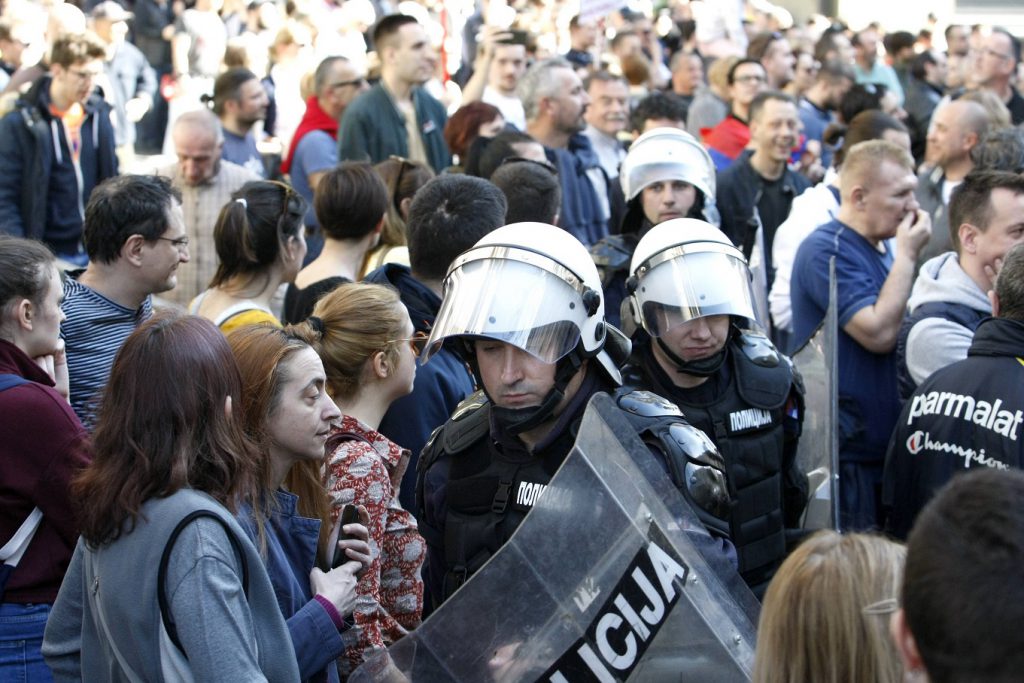 Policija je neke demonstrante udarala, a prema policiji su poletele flaše i saksije.