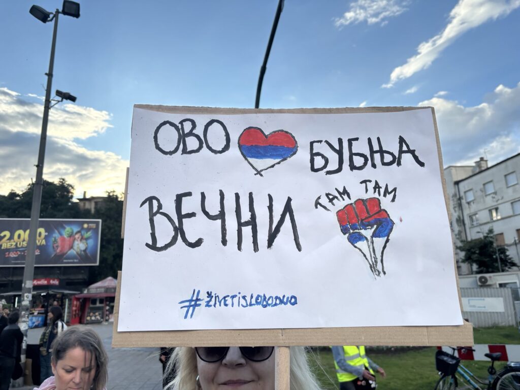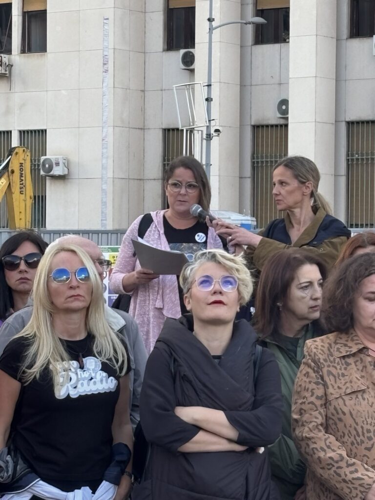 „Rađamo decu u sistemu u kom deci u školama padaju plafoni na glavu, i škole su nam pod nadstrešnicom. Da li smo ih rađali da ih nazivaju teroristima i stranim plaćenicima samo zato što su glasno i jasno rekli dosta je nasilja, korupcija i bahatosti”, rekla je psihološkinja Jasmina Mihnjak.