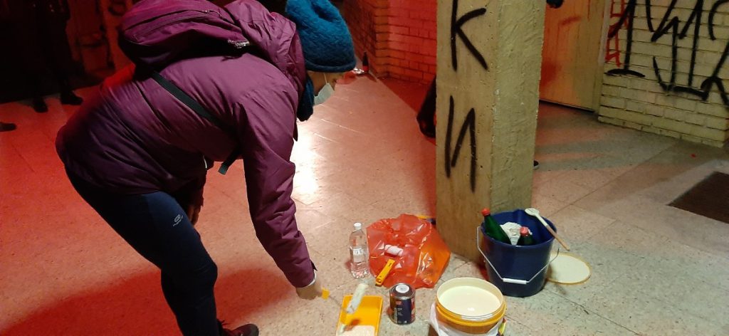 Oko stotinu Novosađana i prijatelja Dinka Gruhonjića spontano su se večeras okupili ispred Gruhonjićeve zgade, donevši sa sobom četke i nekoliko kanti farbe kojom su prekrečili grafite.