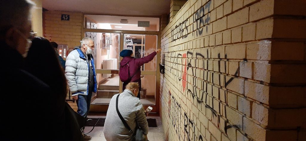 Građani Novog Sada okupili su se večeras ispred zgrade novinara Dinka Gruhonjića gde su okrečili grafite mržnje koje su sinoć ispisale nepoznate osobe na fasadi zgrade i vratima ulaza u kojem živi.
