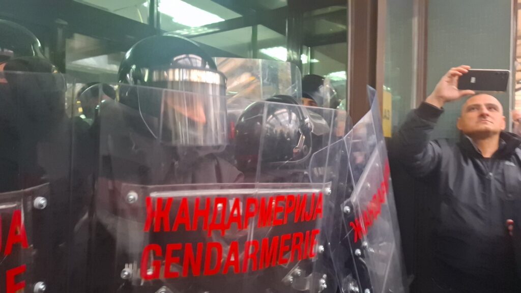 Snimak, koji su preneli brojni mediji, prikazuje incident ispred zgrade RTS-a u kojem je pripadnik žandarmerije udario policajca u civilu, dok su studenti okupljeni na protestu bili optuženi za napad na policajca.