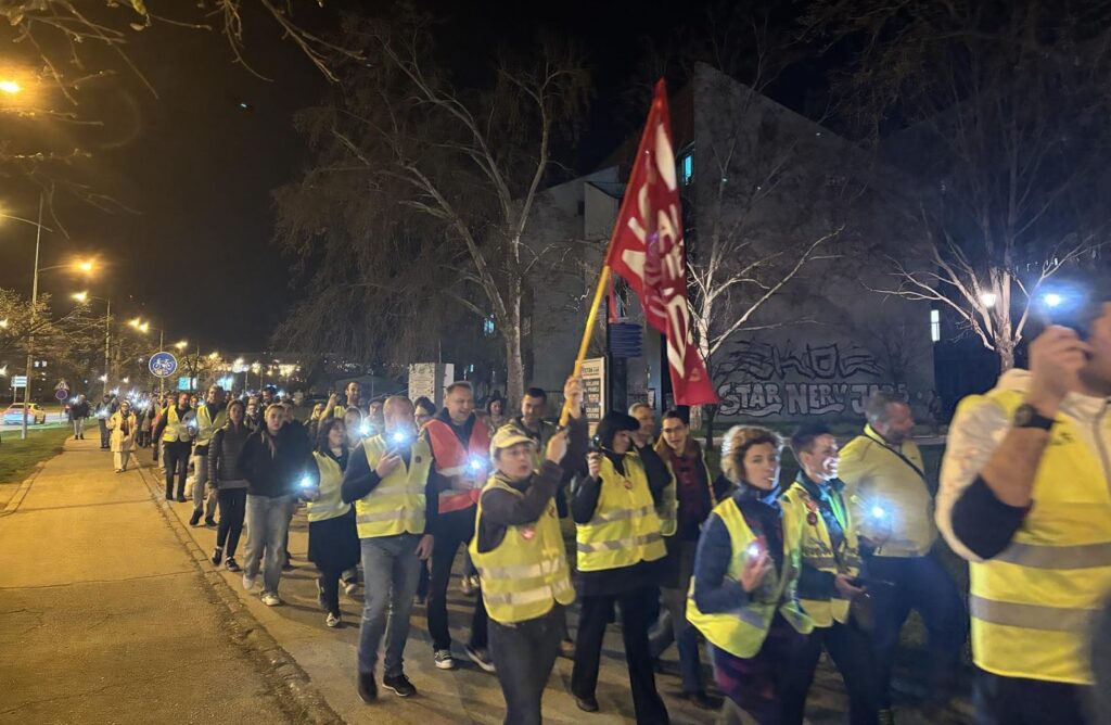 Profesori su nakon toga, sa upaljenim svetlima, otišli u šetnju oko kampusa Univerziteta u Novom Sadu. U Buci koju su tokom šetnje dizali, priključili su iimse građani, kako na ulici, tako i iz svojih stanova u okolnim zgradama.