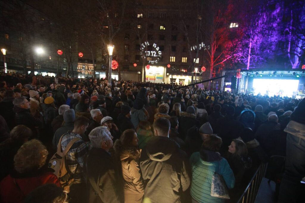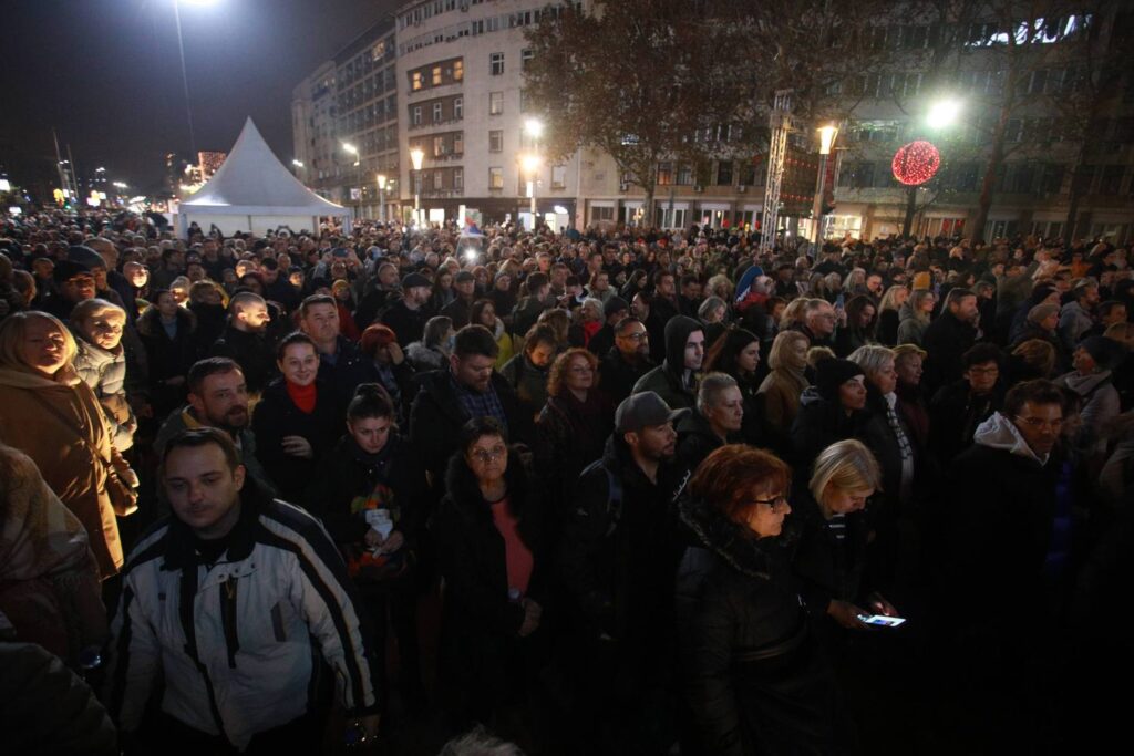Novinar Predrag Peca Popović obratio se okupljenima na Trgu Nikole Pašića rečima da je „ProGlas“ pokrenula reč godine – duhoklonuće.