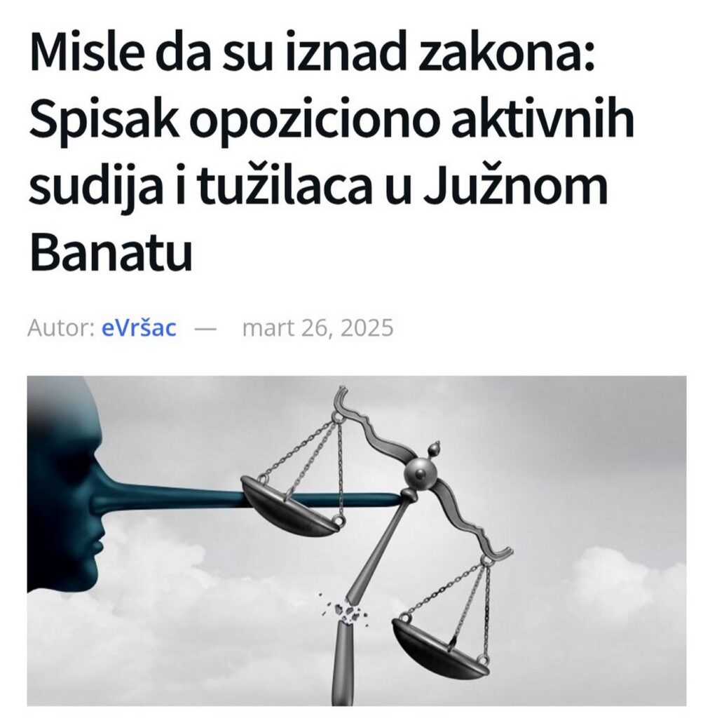 Na sajtu eVrsac objavljen „Spisak opoziciono aktivnih sudija (!) u južnom Banatu“