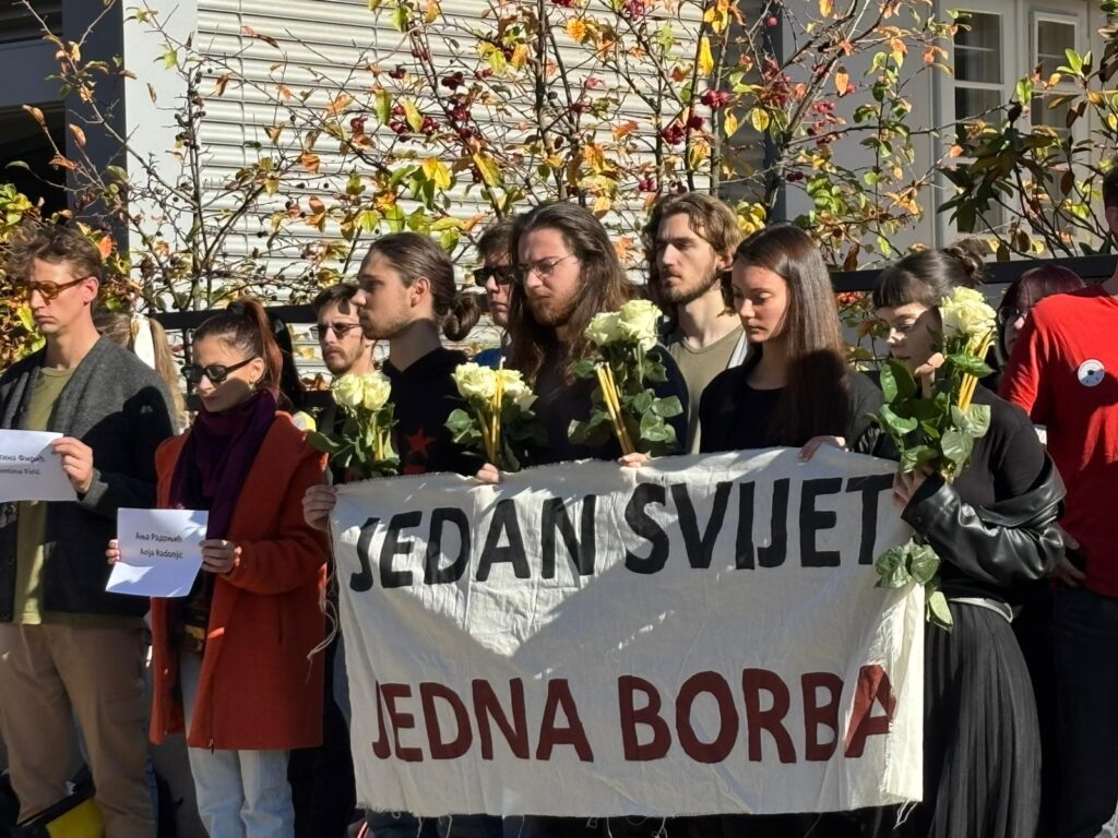Ispred Ambasade Srbije u Zagrebu danas se održava protest u znak solidarnosti sa studentima koji u Novom Sadu obeležavaju godišnjicu pada nadstrešnice.