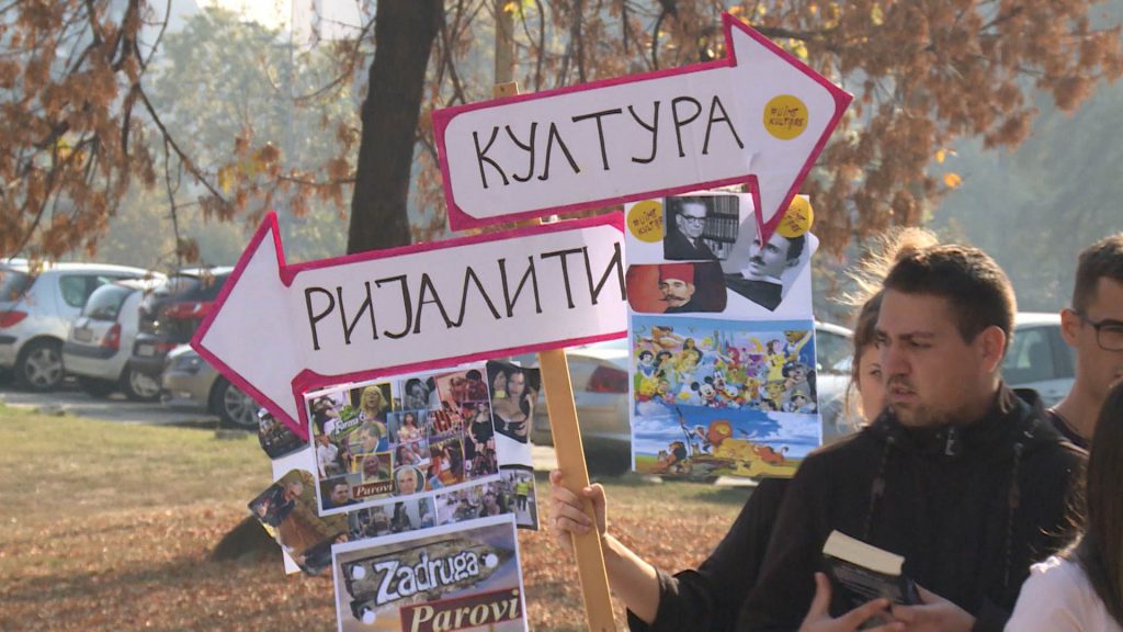 Transparentima protiv rijaliti programa i čitanjem recitacija učesnicu su ukazali da je nedostatak dečijeg programa poledica predloga zakona koji se nalazi pred poslanicima parlamenta.