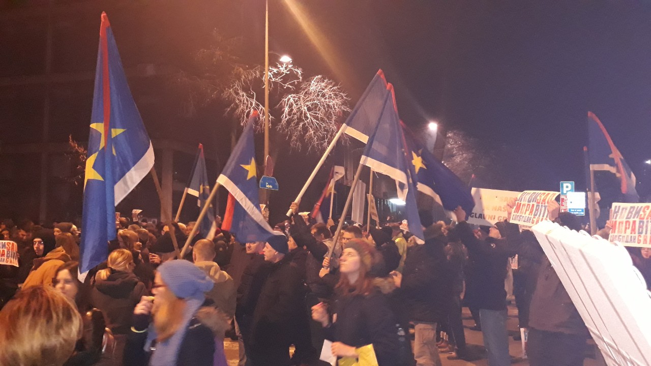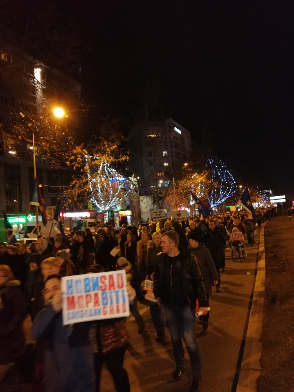 Nakon obraćanja govornika, građani su formirali kolonu koja je krenula u šetnju centralnim gradskim ulicama, a najviše se zadržala ispred zgrade Televizije Vojvodine, gde je organizovano “pet minuta buke” i gde su zapaljene tri baklje “bengalke”.
