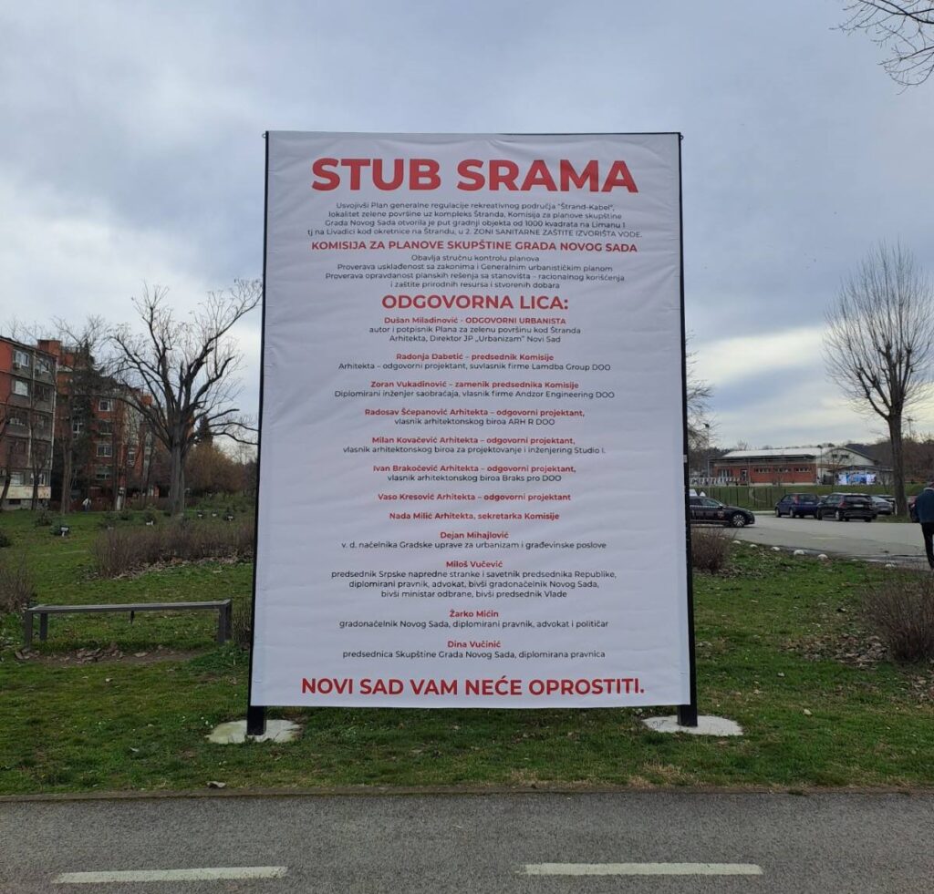Oni su postavili i veliki plakat na kojem piše “Stub srama”, na kojem su istakli imena osoba koje smatraju odgovornima za kršenje zakona.