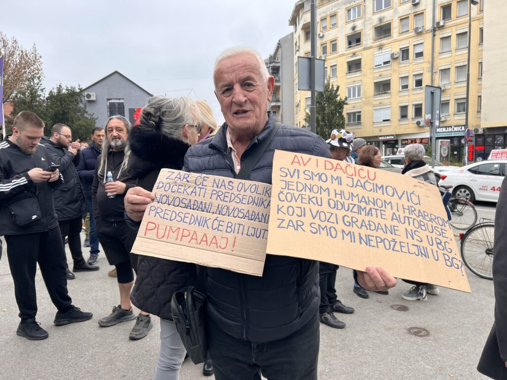 „Nemam više drugog izbora, autobusi su mi uzeti, kazne su mi ispisane milionske. Oni su mene ubili, mrtav sam… Ja i kad bih prodao sve, pitanje je da li bih imao da platim sve kazne koji su mi ispisane“, kazao je Jaćimović na skupu podrške koji su mu organizovali Novosađani.