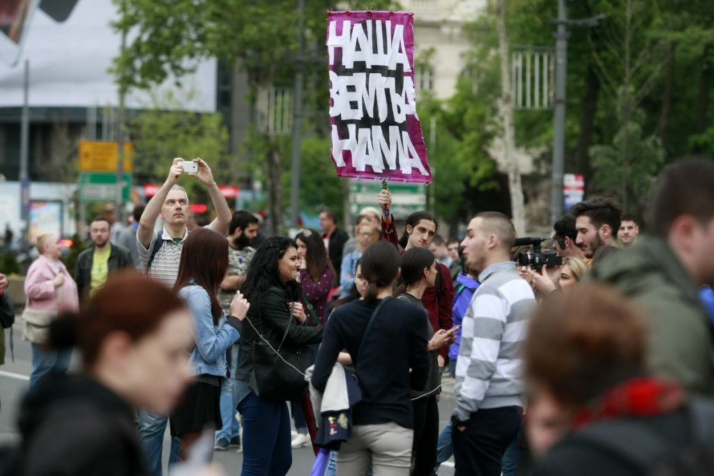 „Nadamo se da će profesori i u praksi da nam pokažu ono što su nam objašnjavali u teoriji – kako se bori protiv diktature“, rekla je ispred zgrade Rektorata jedna od učesnica protesta preko megafona.