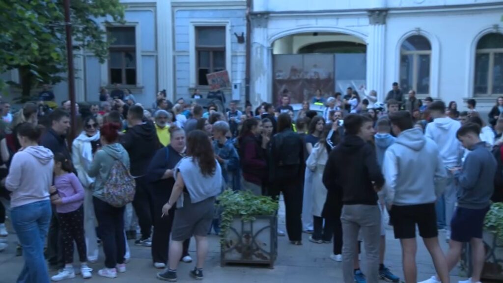 Večeras u 20 časova počeo je protest ispred Gimnazije u Bečeju gde se danas u jednoj učenioci za vreme časa obrušio deo plafona.