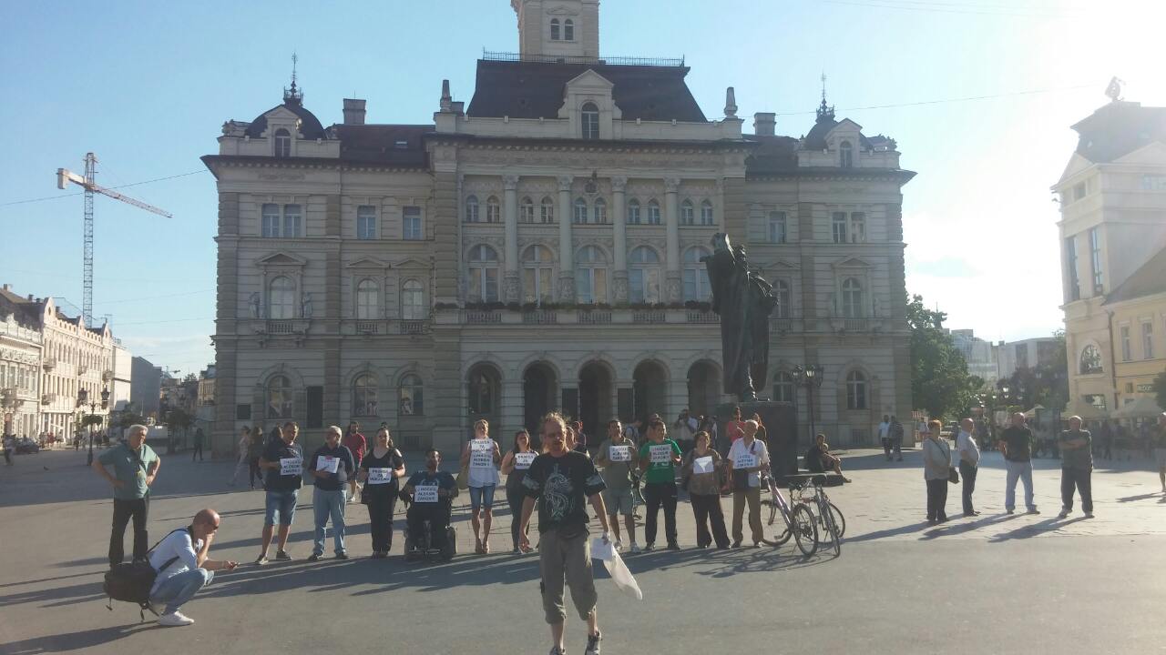 Oko 200 Novosađana okupilo se danas na protestu koji je organizovan u znak solidarnosti sa štrajkačima iz kompanija Zastava, Gorenje i Goša.